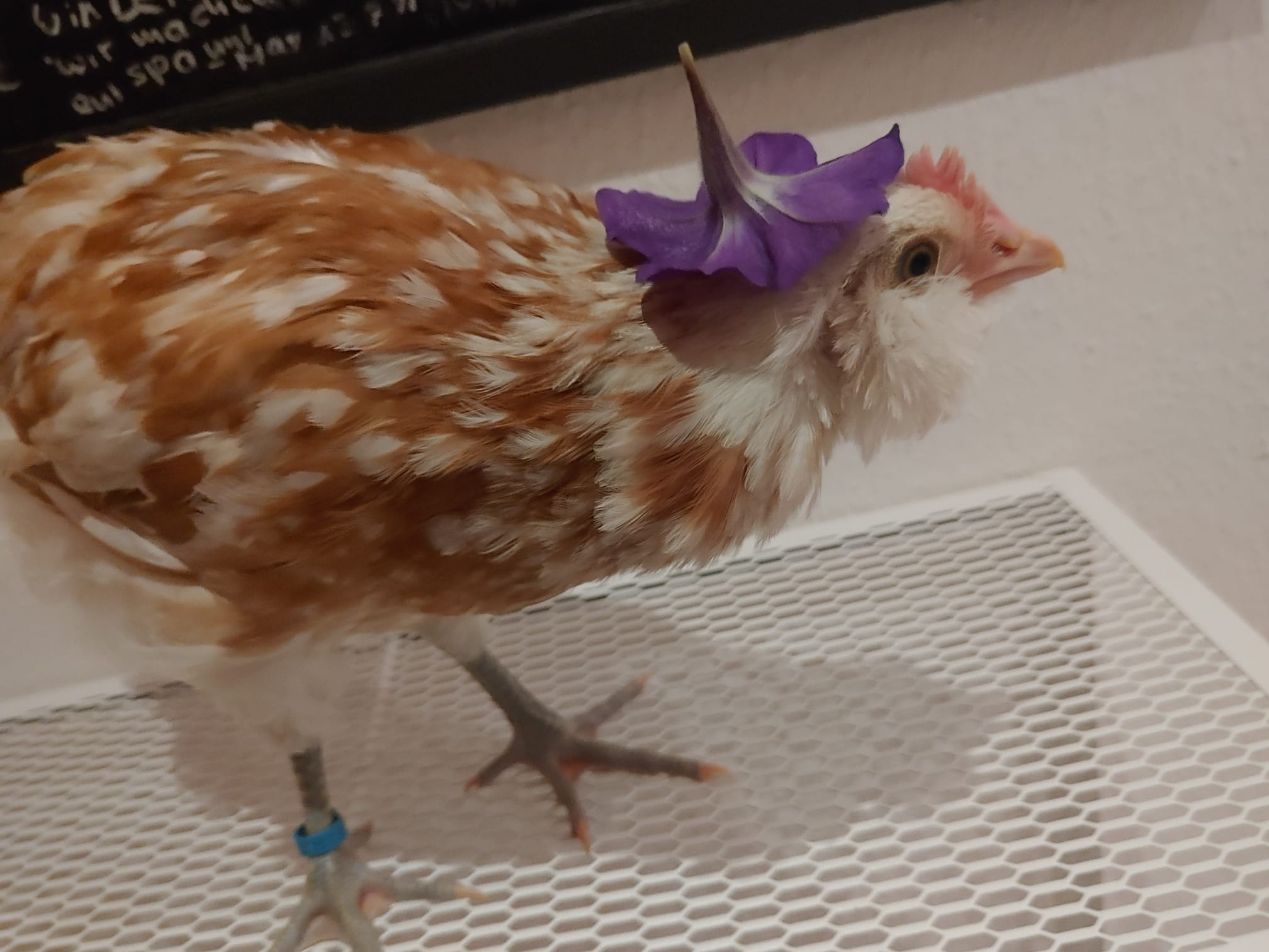 Die Hennen dieser Rasse fallen durch prächtige Bartfedern auf.Sie gehören zu den zahmsten Hühnerrassen der Welt
